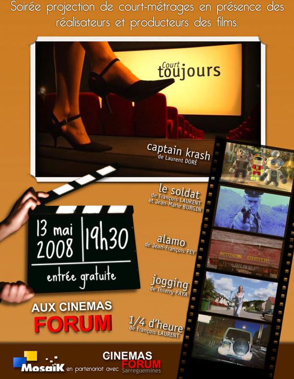 |  PROJECTION "COURT TOUJOURS" de MOSAÏKMardi 13 mai 2008 CINEMAS FORUM SARREGUEMINES